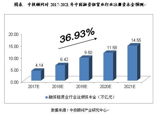 中投顾问对2017-2021年中国融资租赁业行业注册资本金预测