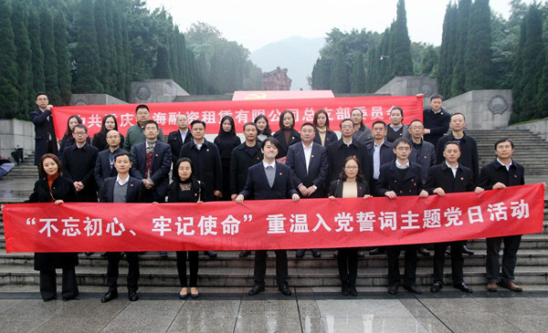 为深入贯彻落实党的十九大精神,教育引导支部全体党员铭记党的奋斗历程,激发干事创业激情,结合推进“两学一做”学习教育常态化制度化,在纪念“11·27”烈士殉难68周年前夕,11月22日,银海租赁党总支组织全体党员、入党积极分子等赴歌乐山烈士墓开展“不忘初心、牢记使命”重温入党誓词主题党日活动。