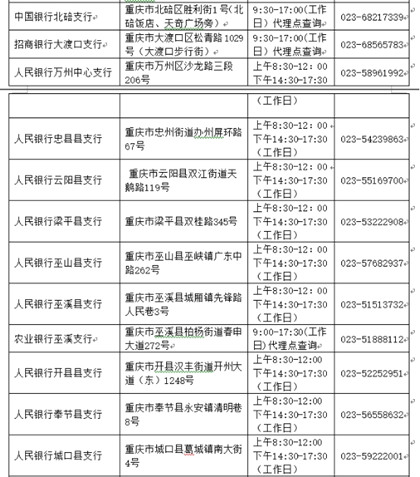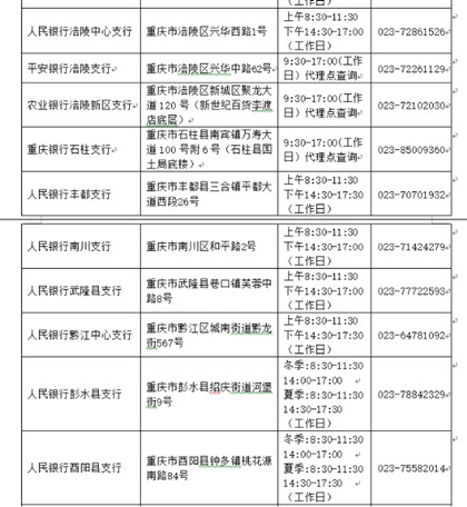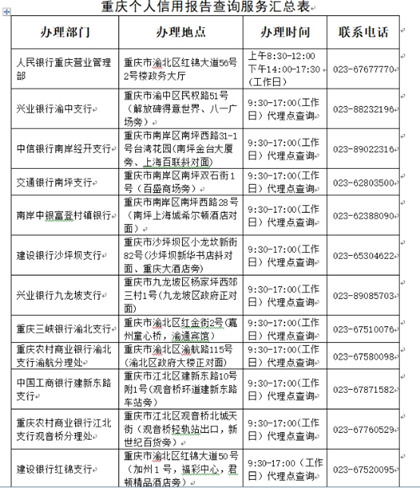 三、重庆辖区个人信用报告查询网点