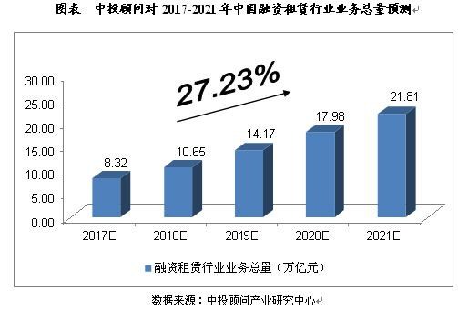 中投顾问对2017-2021年中国融资租赁行业业务总量预测
