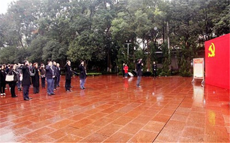 歌乐山下,烈士墓前,大家怀着无比崇敬的心情,向革命烈士鞠躬、默哀、敬献花圈,绕墓瞻仰,缅怀革命丰功伟绩,表达对先烈的无限哀思,并在鲜红的党旗下重温入党誓词。